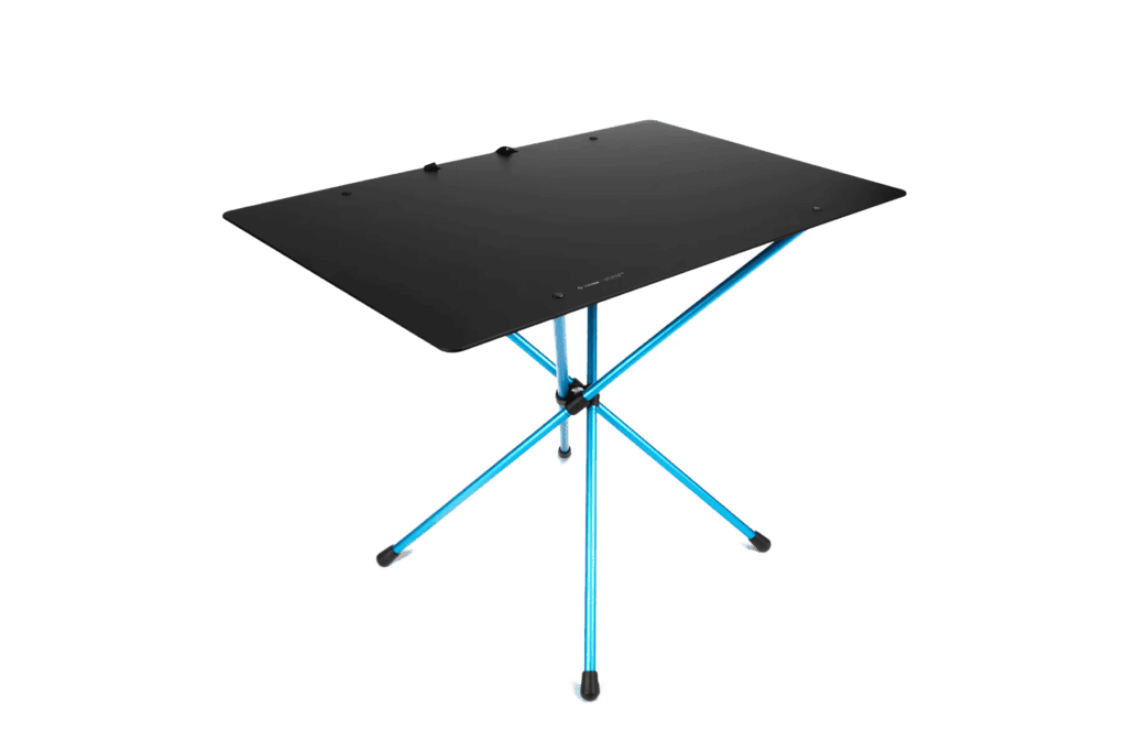 Der CafĂ© Table Wide ist Ă€uĂerst tragbar und praktisch. Die kompakten, faltbaren Beine rasten einfach in die TischflĂ€che ein, und der Tisch lĂ€sst sich in einer flachen ReiĂverschlusstasche mit den MaĂen 65 cm x 61 cm x 6 cm verstauen. Das macht ihn ideal zum Aufbewahren an Orten mit wenig Platz, wie in einem Wohnmobil.
