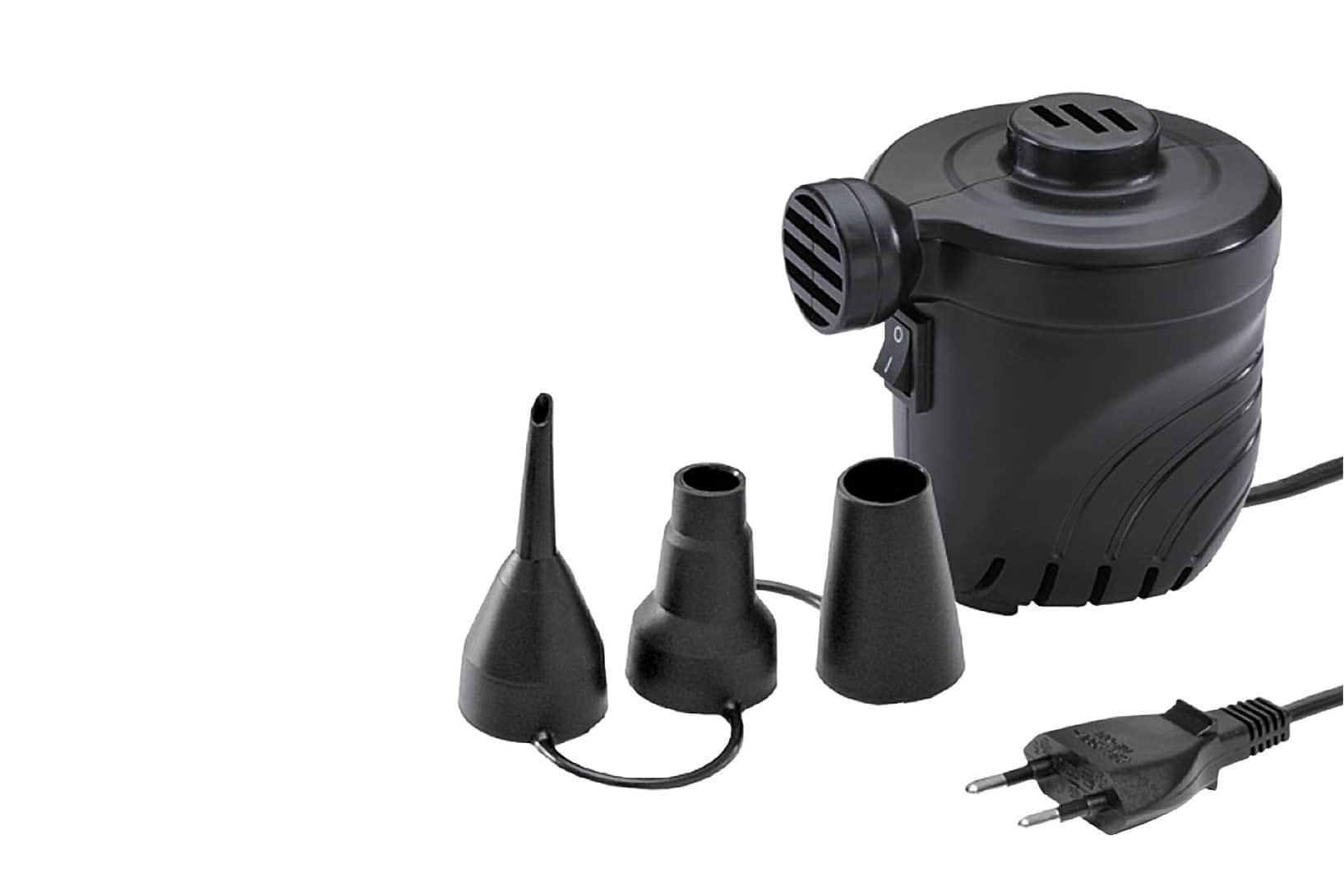 Elektropumpe mit 230V Anschluss. Ideal zum Aufblasen und Entlüften von Aufblasartikel aller Art. Die kleine, handliche Pumpe wiegt nur ca. 500g und hat eine Power von ca. 140Watt. Zu den Pumpen werden verschiedene Adapter mitgeliefert, die zu fast allen gängigen Ventilgrößen von Aufblasartikel passen.
