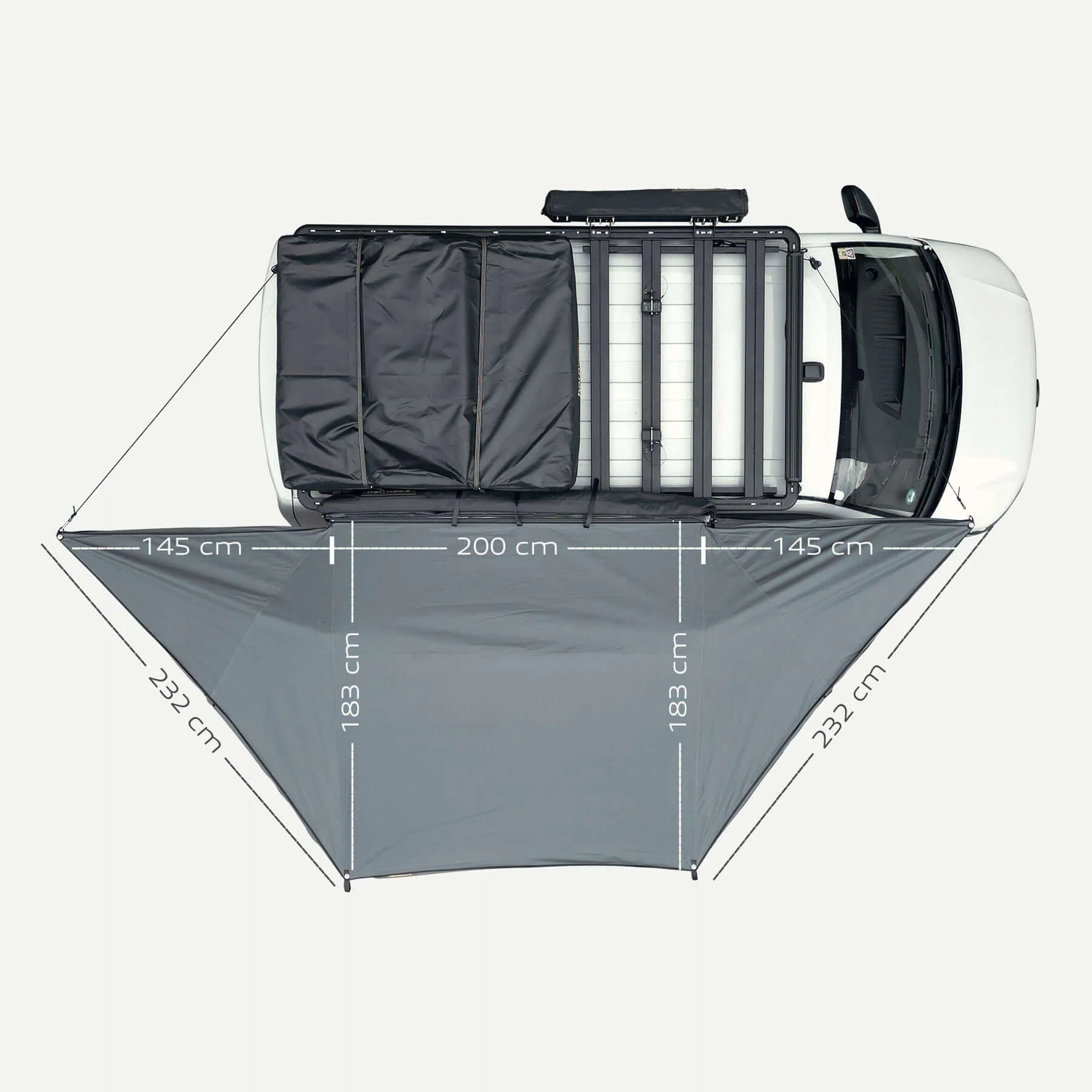 - Ultraleichtes Design: Mit einem Gewicht von nur 18 kg bietet die Markise genug FlexibilitÀt, um sie zusammen mit DachtrÀgern und Dachzelten zu nutzen, ohne dein Fahrzeug zu belasten.