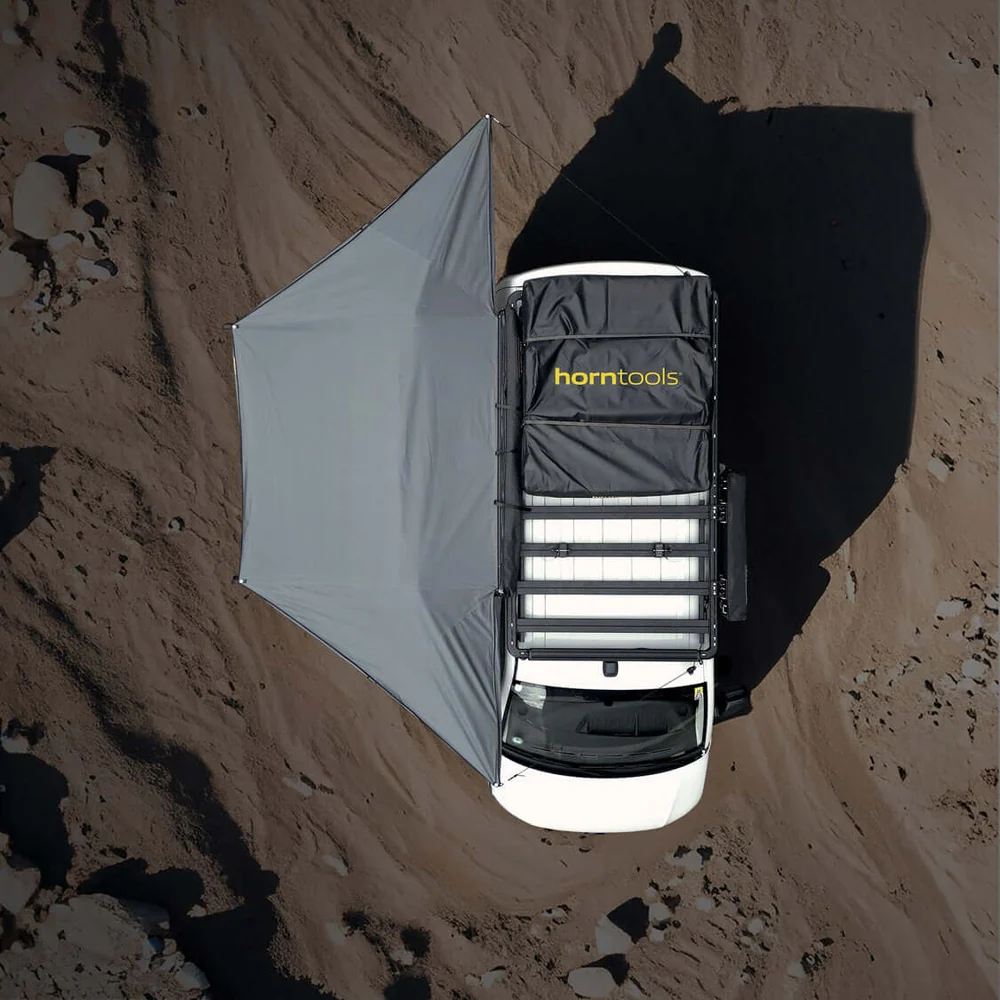Erweitere dein Outdoor-Erlebnis mit der Horizon Markise von Horntools und genieĂe deine Abenteuer unter freiem Himmel mit Stil, Komfort und Schutz.