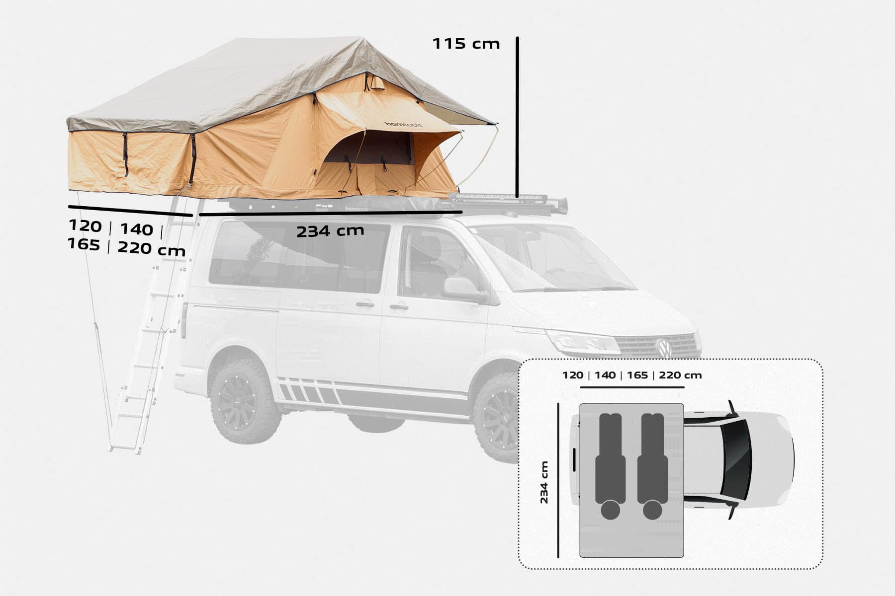 Mit dem Desert Dachzelt von Horntools bist du bestens ausgestattet für dein nächstes Campingabenteuer. Genieße den Komfort und die Flexibilität dieses hochwertigen Dachzelts und erlebe unvergessliche Campingmomente.