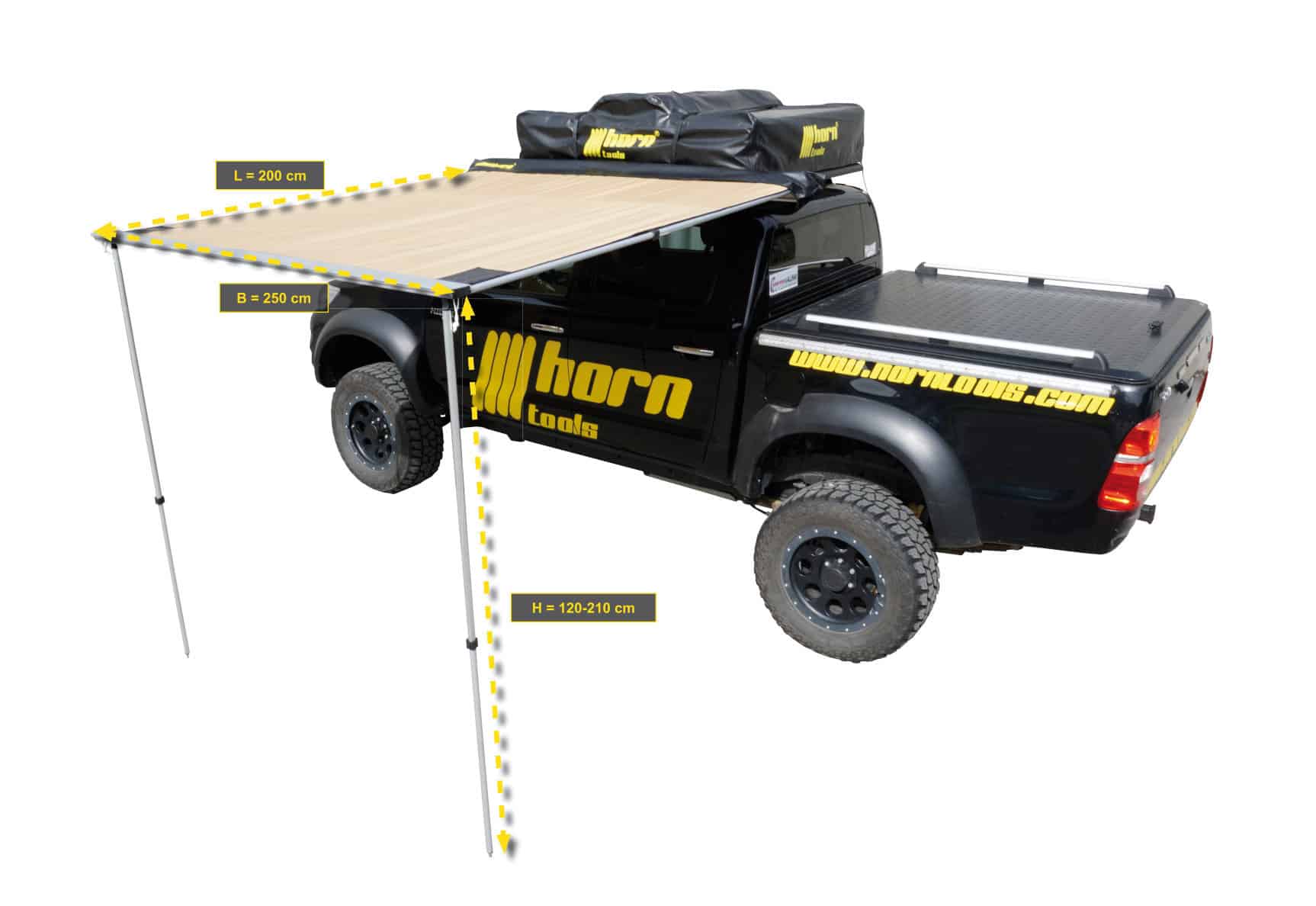 Die Horntools Markise Straight ist der ideale Sonnenschutz für Camper und Outdoor-Enthusiasten. Mit ihrer hochwertigen Verarbeitung und ihrem praktischen Design bietet sie den perfekten Schutz vor Sonne und Regen.