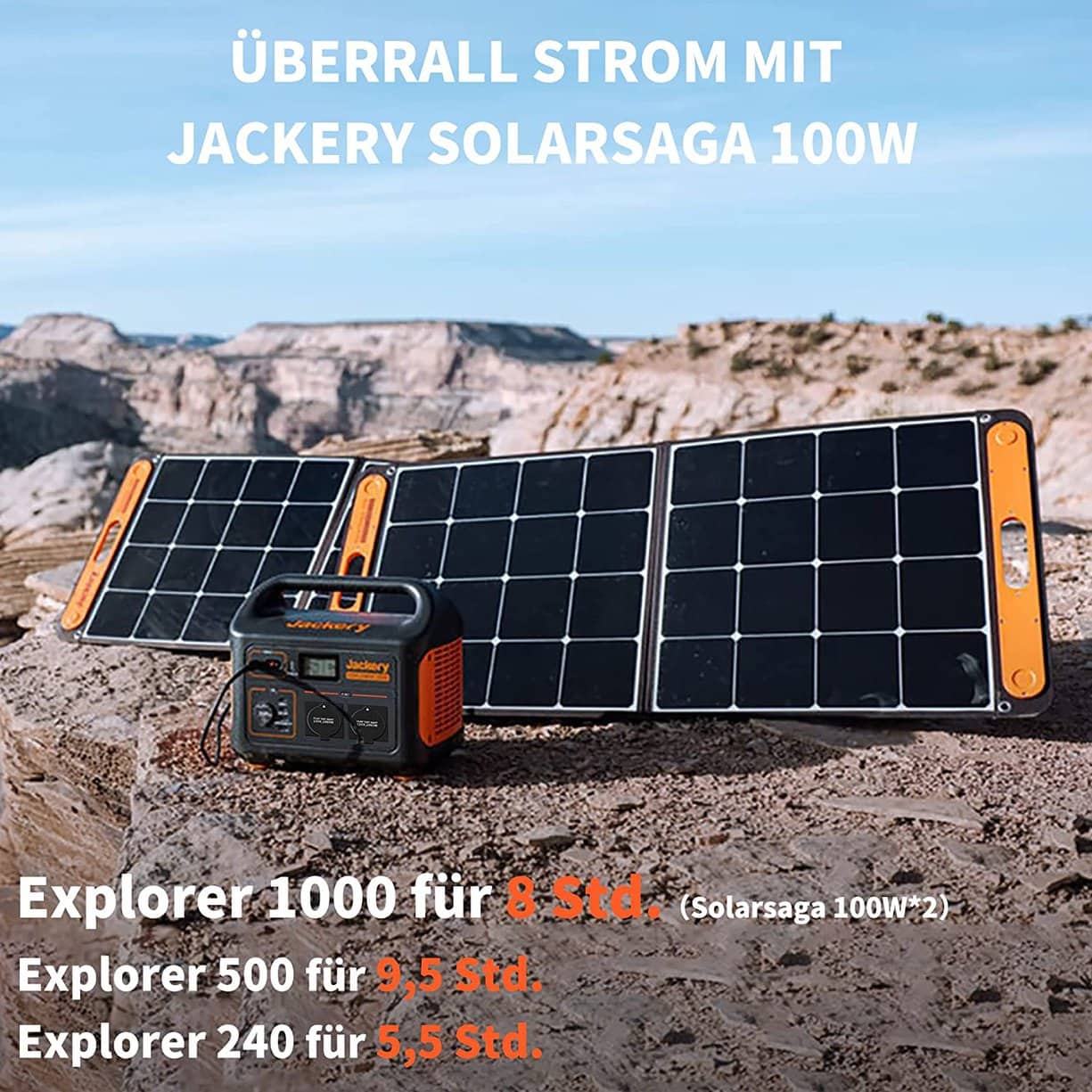 • Kompatibel: Das SolarSaga 100 Solarpanel ist mit seiner Leistungsspitze von 100W mit den Powerstations 1000/500/240 von Jackery kompatibel.