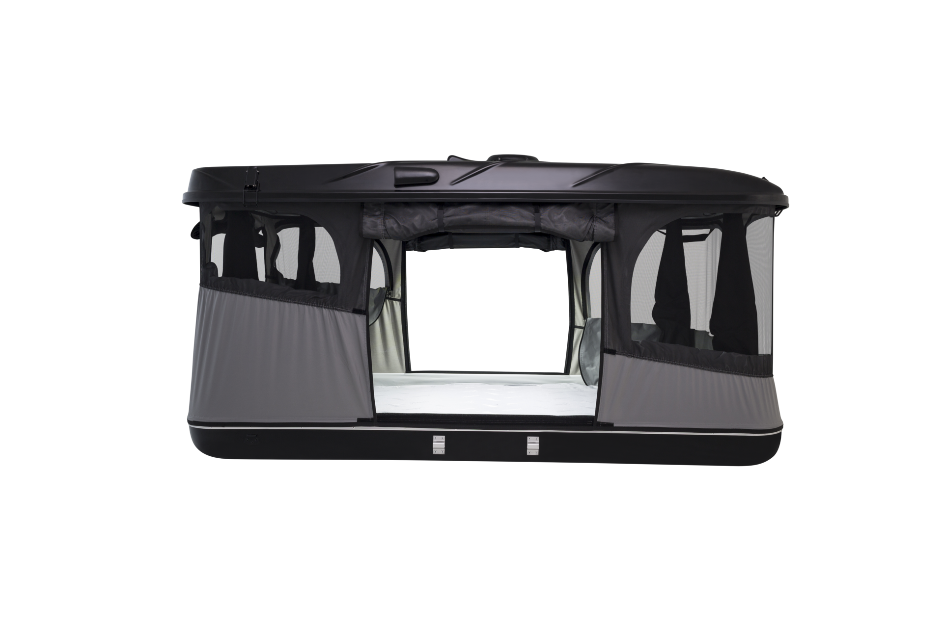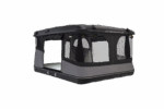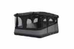 Das Grand Raid Dachzelt bietet dir durch den eingebauten Lüfter eine hervorragende Belüftung im Zelt. Der Lüfter reduziert die Kondensation im Zelt. Außerdem verfügt es über 3 Öffnungen, welche dir den Einstieg von allen Seiten ermöglicht. Unerwünschte Insekten können durch das bereits eingebaute Moskitonetz ferngehalten werden, welches durch einen leisen Reißverschluss am Tencate Zeltmaterial befestigt, und somit auch einzeln zu öffnen, ist. Um dich vor jeglichen Wetterbedingungen zu schützen, ist der Zeltstoff (Tencate Material) wasserdicht und gegen Hitze und Kälte isoliert. Das Dachzelt ist außerdem mit einer energiesparenden LED-Leuchte ausgestattet, welche für ein angenehmes Licht im Zelt sorgt. Zusätzlich bietet das Zelt eine 360° Panoramasicht.