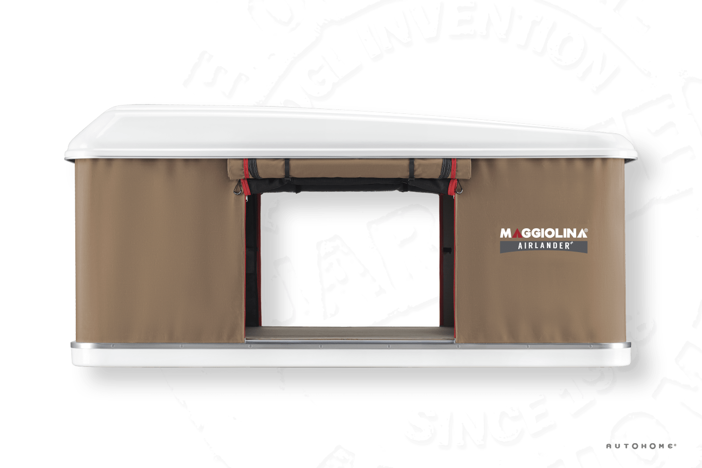 Das Maggiolina Airlander Plus von Autohome ist ein klassisches Dachzelt mit einem eleganten und aerodynamischen Design. Es passt perfekt auf kleine Pkws und Allradfahrzeuge (4x4). Das Öffnen des Zeltes erfolgt mithilfe einer Kurbel. Der Dachboden des Zeltes ist schalldicht und gut gedämmt, um Kondenswasserbildung zu vermeiden.