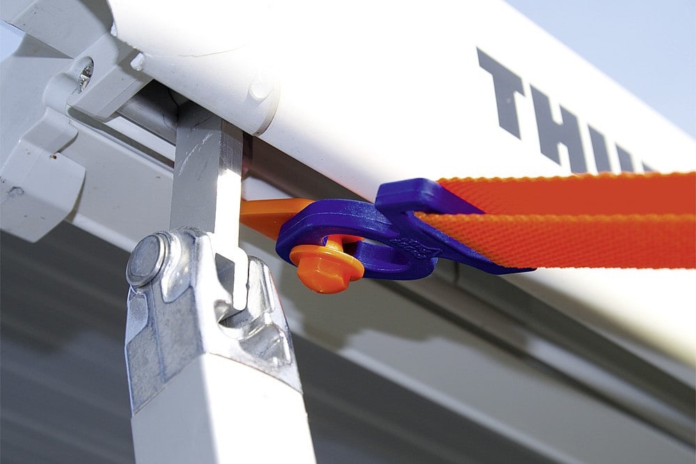 Das Abspannband für Markisen ist nahezu universell einsetzbar und entlastet die Markise bei starkem Wind. Der T-Connector wird in der Markisenschiene eingehakt und kann sich nicht von allein lösen. Durch das variabel einstellbare Band kann es leicht an die Gegebenheiten vor Ort angepasst werden. Die orangene Farbe ist auch bei Dunkelheit zu erkennen. Für einen optimalen Halt im Boden empfehlen wir die Verwendung von Schraubheringen.