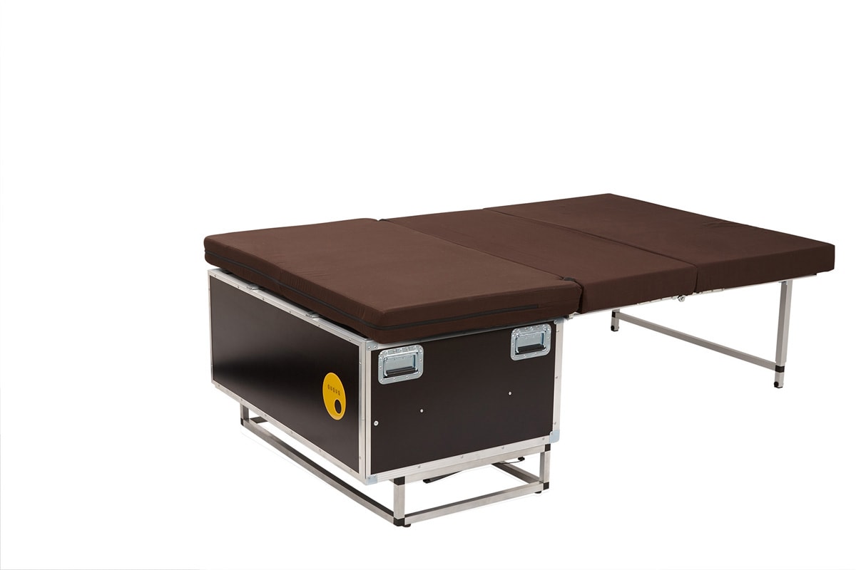 • Flexibles Bett-System: Das Bett der BusBox-1/2 ist abnehmbar, sodass die Küchenbox und das Bett nacheinander ins Fahrzeug gesetzt werden können. Mit einem Handgriff ist das bequeme Bett ausgeklappt und bietet mit einer 10 cm dicken Kaltschaummatratze und einer Größe von 134 x 195 cm optimalen Schlafkomfort.