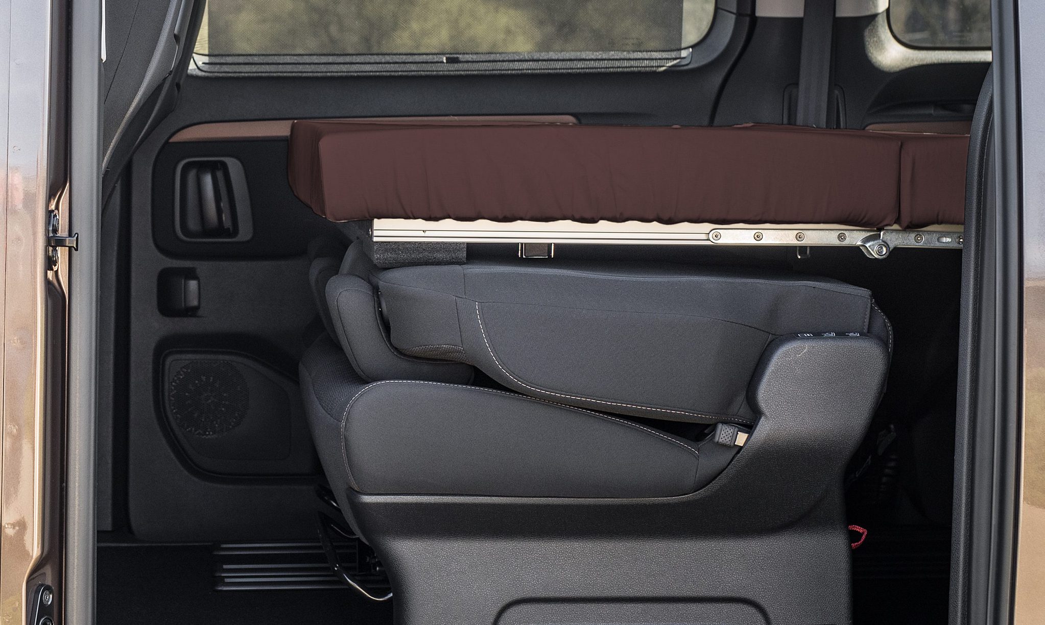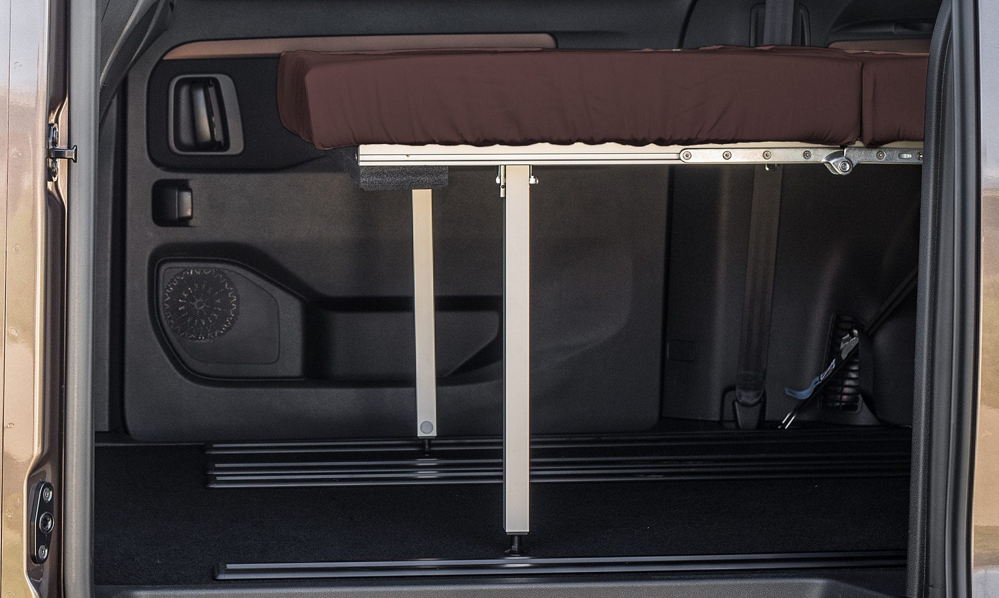 - Bett in Sekunden: Das bequeme Bett ist mit einem Handgriff ausgeklappt und bietet mit einer 10 cm dicken Kaltschaummatratze und einer Größe von 125 x 195 cm optimalen Schlafkomfort – egal, ob mit oder ohne Rücksitzbank.