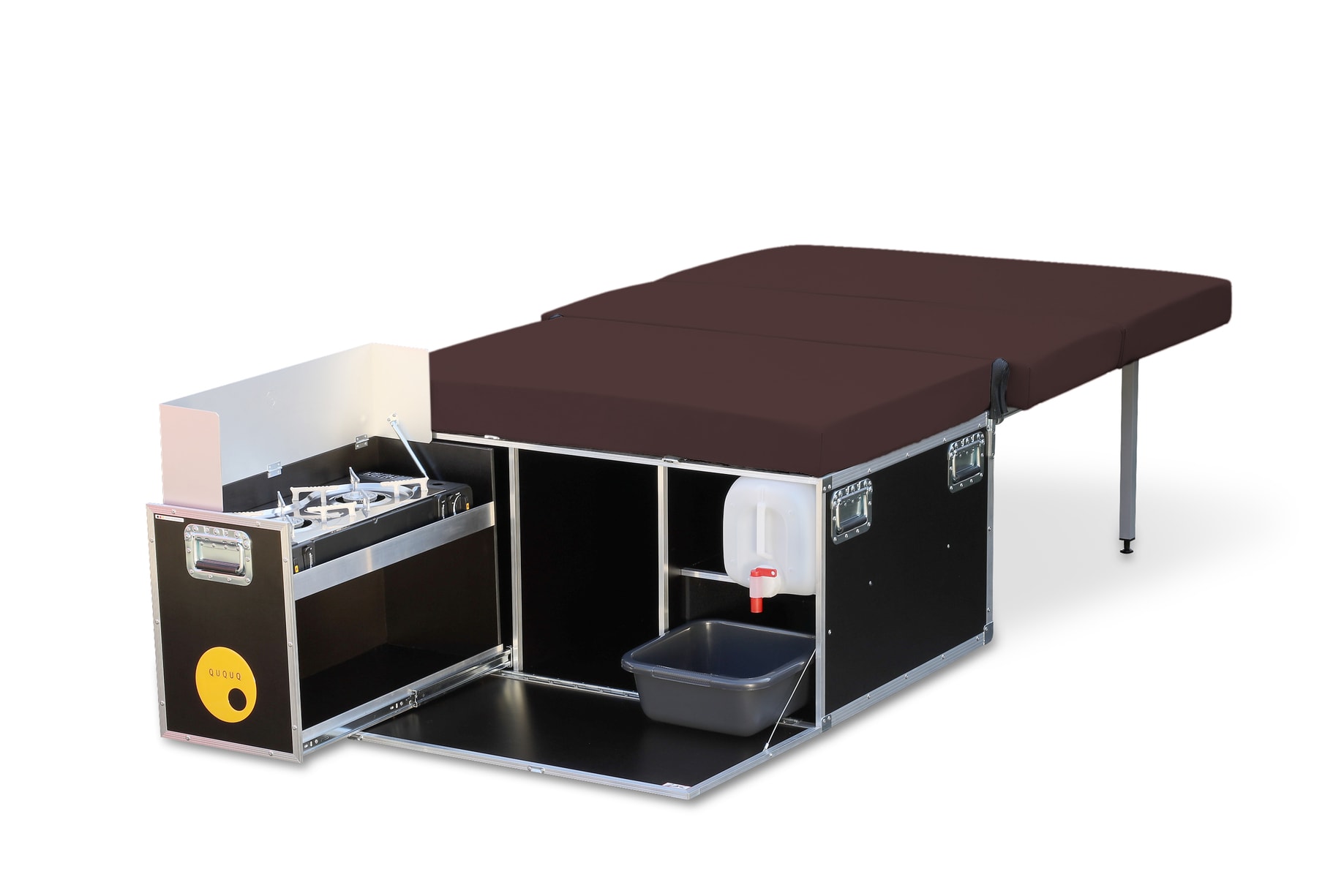 - Küche bereit in Sekunden: Die Küche ist ebenso schnell einsatzbereit. Mit dem 2-flammigen Kocher, inklusive Windschutz, und praktischen Wasserkanistern, kannst du überall leckere Mahlzeiten zubereiten.